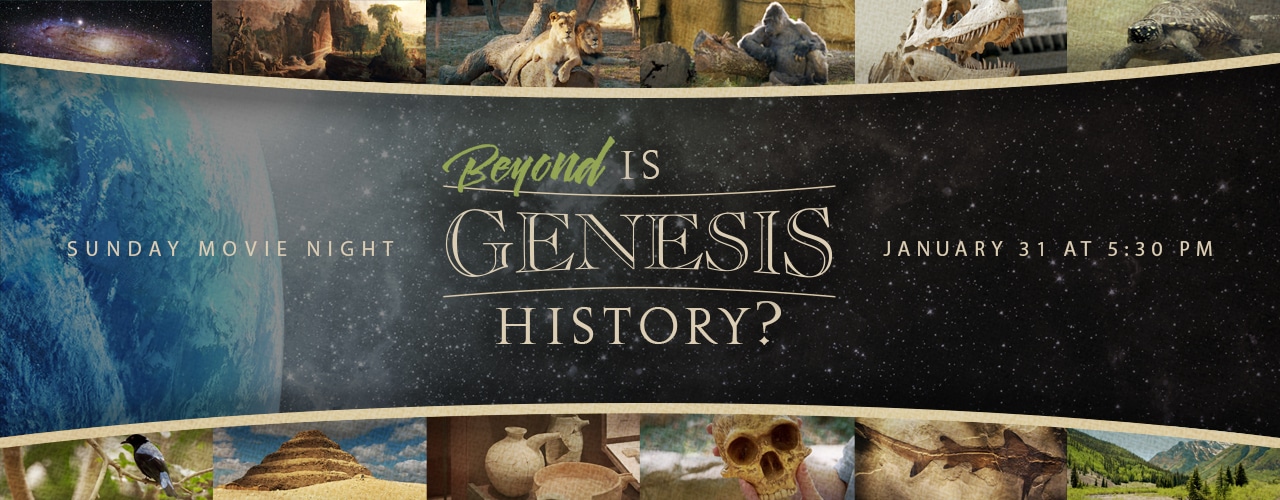 Join us at 5:30 PM on Sunday, January 31 for “Beyond Is Genesis History?” This movie is a fascinating look at the importance of the doctrine of creation. Learn from scientists and scholars as they explore the world around us in light of the book of Genesis.