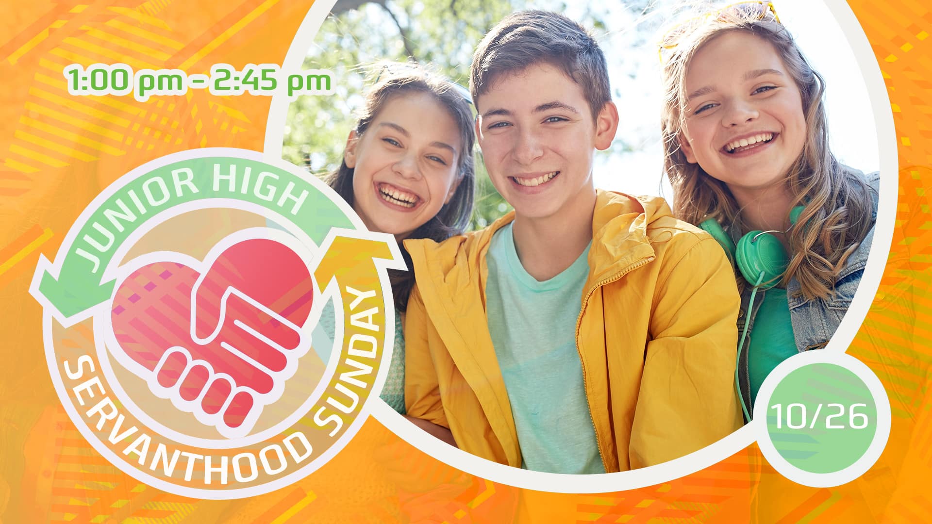 Jr. High students, let’s put some feet to our faith by serving after church from 1:00-2:45 PM. We will help around the church by cleaning and organizing the Children’s Ministry classrooms. There will also be an opportunity to fellowship over lunch, which we will provide. Register to be a part of Servanthood Sunday!