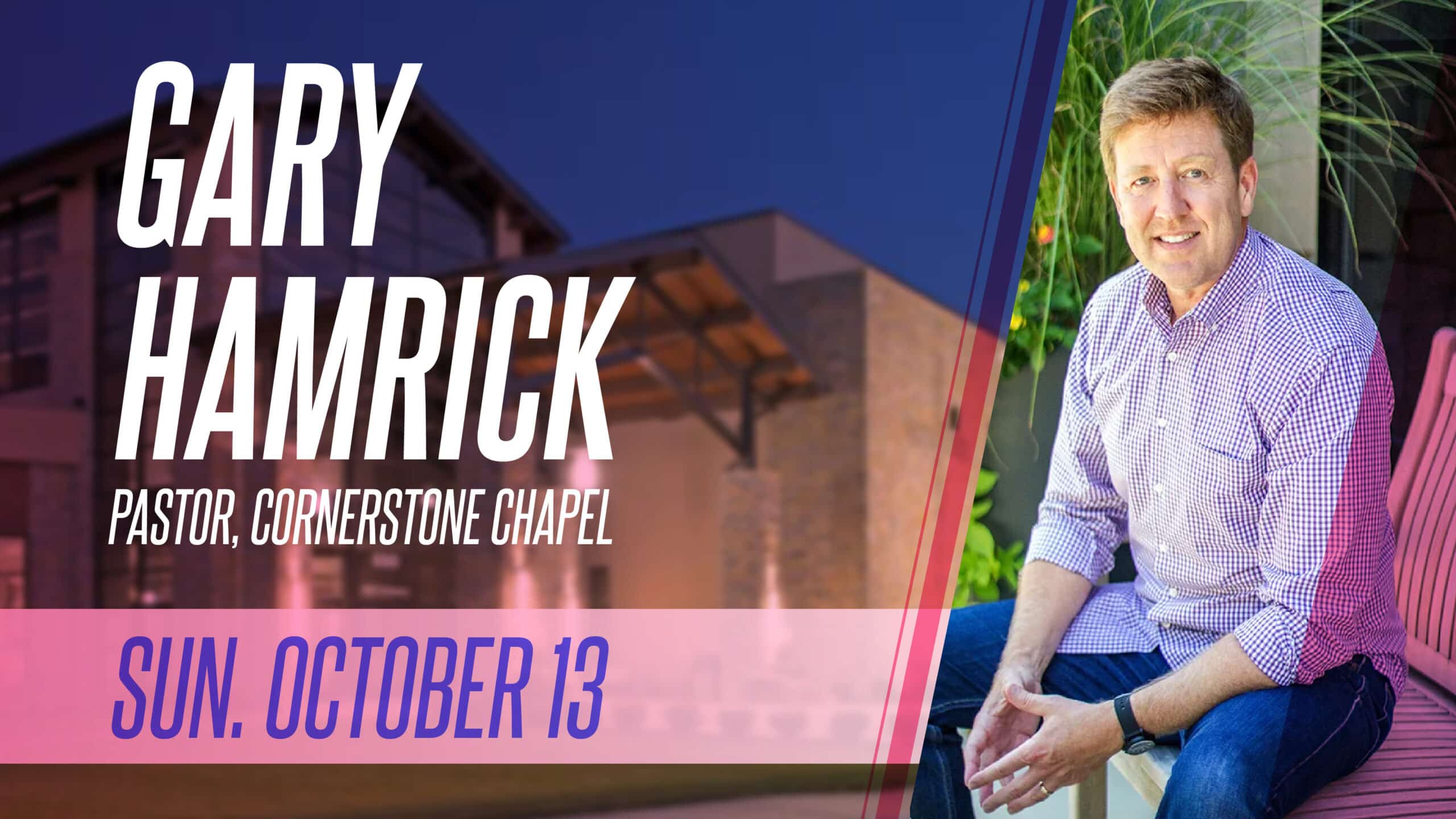Join us for an inspiring time of worship and a special message from Pastor Gary Hamrick from Cornerstone Chapel in Virginia. Be part of our Sunday services on October 13 at 8:00 AM, 9:45 AM, and 11:30 AM. Don’t miss out!
