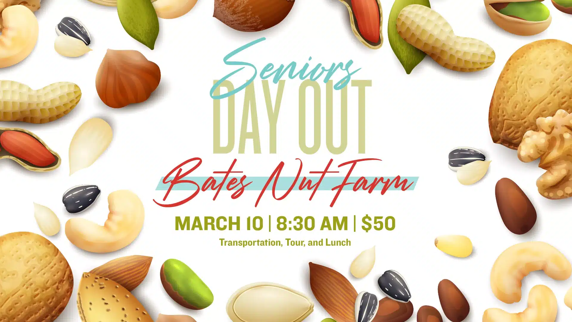 Seniors, on Friday, March 10, we are headed to Bates Nut Farm in Valley Center. We will be given the “Nuts For You” tour and explore the 100-acre ranch, followed by a “Wrangler BBQ Lunch.”