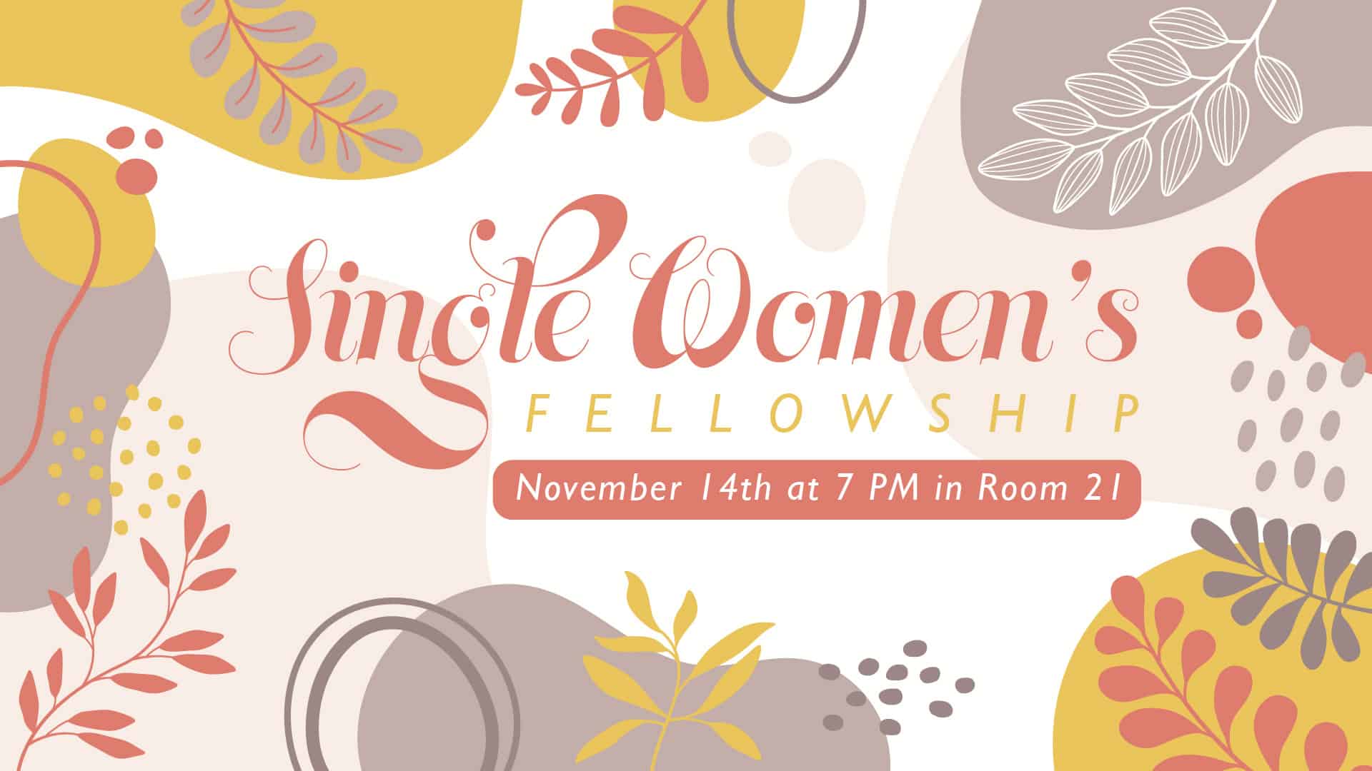 Join us for the Single Women’s Fellowship! This monthly gathering is a wonderful opportunity to connect, build meaningful friendships, and share in fellowship, devotion, and prayer. Save the date: Friday, November 14, at 7:00 PM in Room 21.