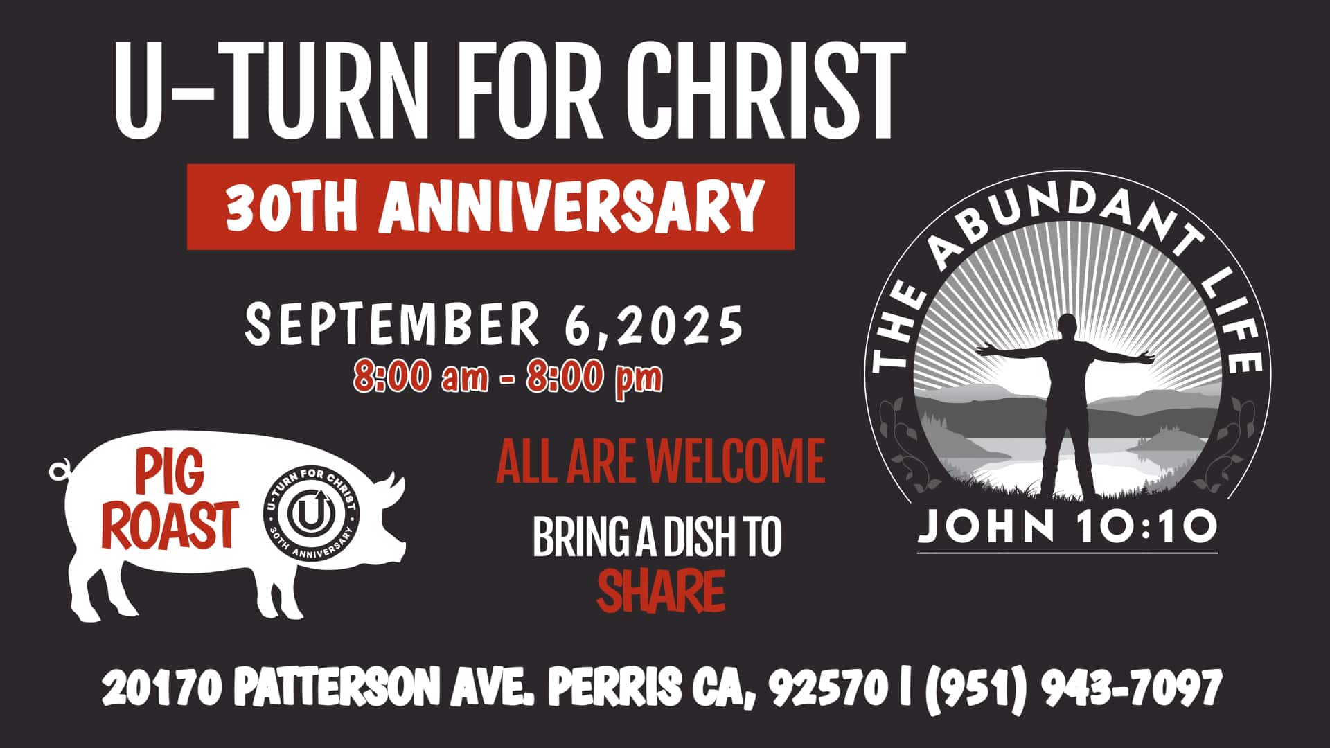Join us, U-Turn For Christ, on Saturday, September 6th, for their 30th Annual Pig Roast!